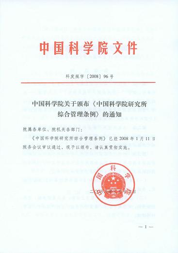 关于颁布《中国科学院研究所综合管理条例》的通知